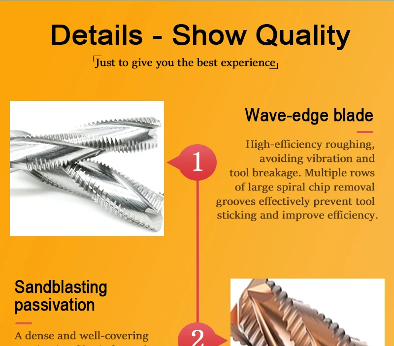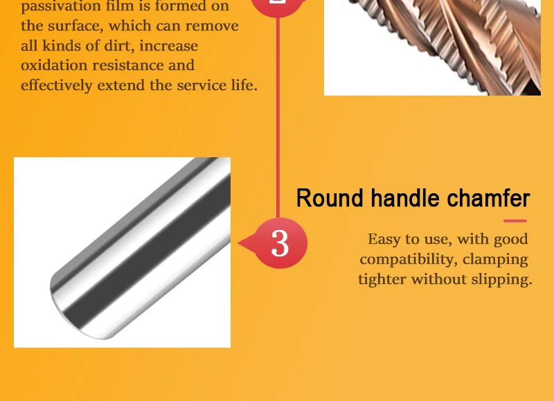 ★ 4 Flute Applicable processing fields: stainless steel, die steel, tool steel, quenched steel, alloy steel, cast iron and other steel materials.