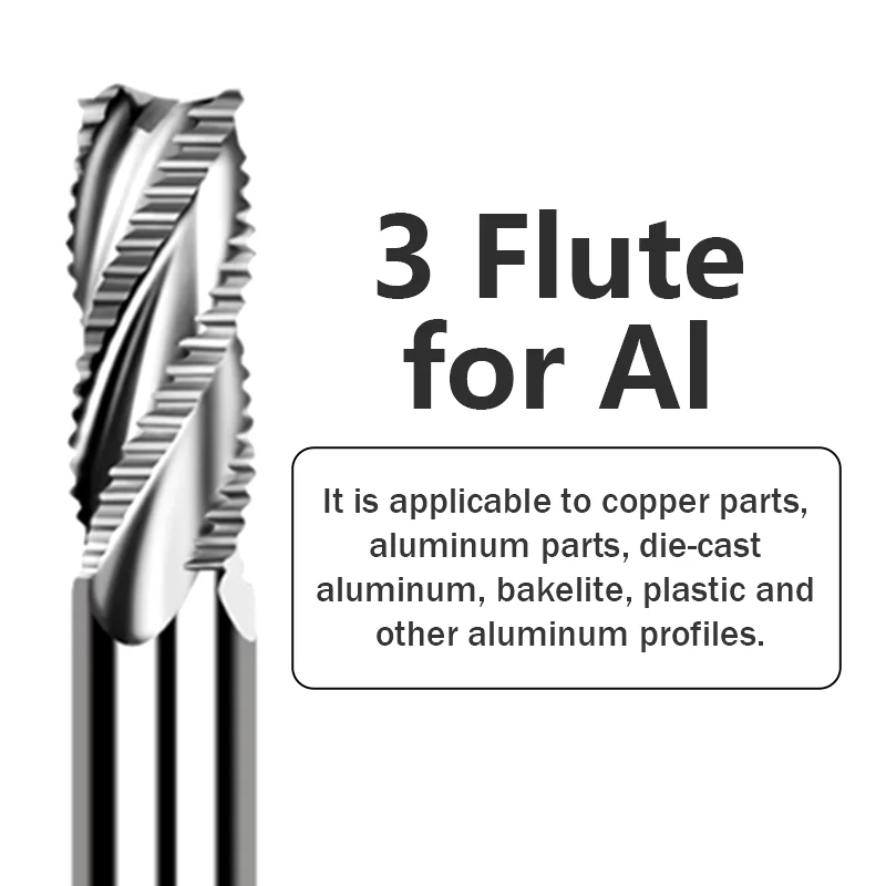 ★ 3 Flute Applicable processing fields: copper, aluminum, aluminum alloy, magnesium alloy, zinc alloy and other aluminum profiles.