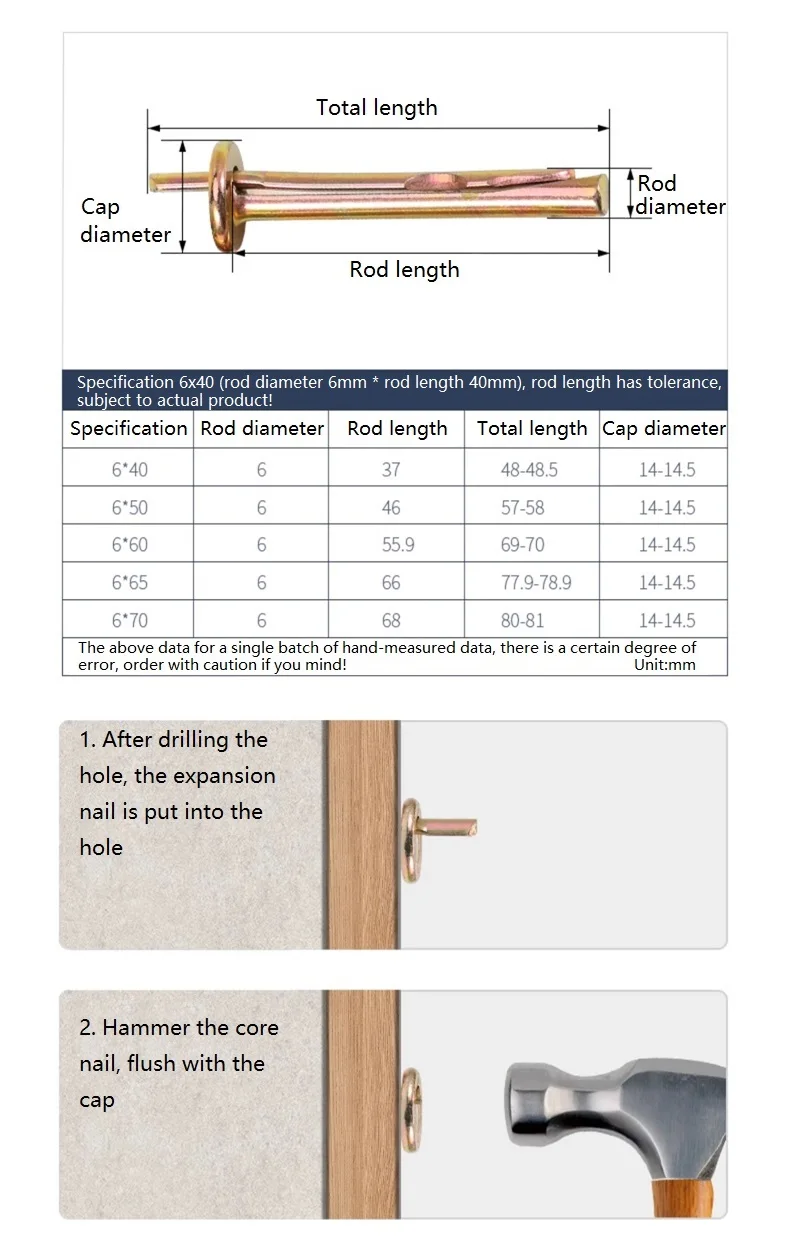 For example: 6x40 (Rod diameter 6mm * Rod length 40mm)