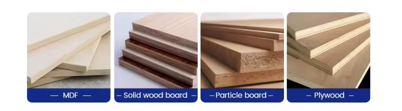 The machine can process the above boards: MDF, solid wood board, solid wood composite board, particle board, plywood, PVC board, etc.,