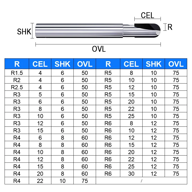 Diameter: R1.5 R2 R3 R4
